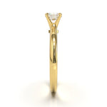 Disfruta de la elegancia con nuestro anillo de compromiso estilo solitario petite con 4 uñas. Disponible en oro de 14k o 18k en tonos amarillo, blanco o rosa, esta montura es la representación perfecta de simpleza y porte. Hecho a mano, su tiempo de fabricación es de 4 a 6 semanas, garantizando la calidad y el detalle en cada pieza. (El precio reflejado es solo por la montura elegida y no incluye el diamante central).