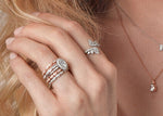 El anillo Rossetti, clásico y realista, combina forma y función con una suave alianza y un brillante halo de diamantes. Dos diamantes secretos están situados debajo de la piedra central principal, aportando mayor dimensión y...