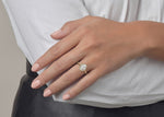 El anillo Rossetti, clásico y realista, combina forma y función con una suave alianza y un brillante halo de diamantes. Dos diamantes secretos están situados debajo de la piedra central principal, aportando mayor dimensión y profundidad al diseño. Disponible en oro rosado, amarillo o blanco de 14k, con un ancho de aro de 1.70 mm y cuatro garras que aseguran la piedra.